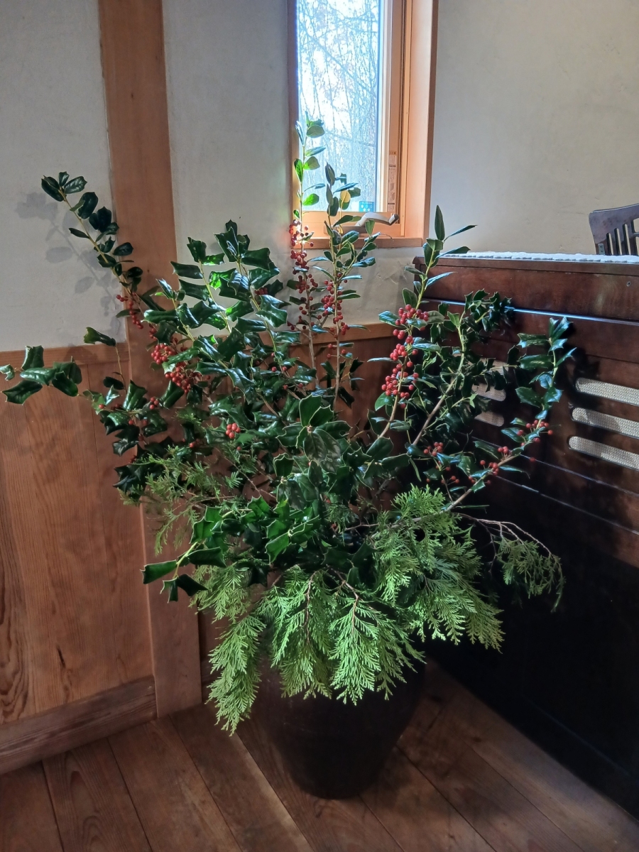 2025年 2024年 2023年 2022年 2021年 2020年 クリスマスキャンドルアレンジメント。2025年。 チャイニーズホーリー、コニファー。2025年11月30日。今日からアドヴェント。八ヶ岳は冬に向かいます。 小菊、レンギョウの枝、ゆきやなぎの枝。2025年11月9日。今年のお花は今日でおしまい。教会の庭の木々がきれいに色づいています。 みなづき、レンギョウの枝、ブルベリーの枝。2025年11月2日。急に寒くなりました。今朝、礼拝堂の薪ストーブに火を入れました。 ウインターコスモス、白穂きび。2025年10月26日。 柏葉あじさい、こでまりの枝。2025年10月19日。 白穂きび、黒穂きび、のりうつぎ。2025年10月12日。教会の周りの田んぼは稲刈りが終わり、山桜の葉が色づき、秋の風景になってきました。 アナベル、白みずひき、うど、イワナンテン。2025年9月28日。 紫苑、くじゃくそう、ソリダゴ。2025年9月21日。 みなづき、ほととぎす、白山菊。2025年9月14日。 みなづき、すすき、矢羽すすき。2025年9月7日。 みなづき、角虎の尾、ユーパトリウム、すすき。2025年8月31日。 みなづき、縞すすき、細葉すすき。2025年8月24日。まだまだ猛暑が続いています。 アナベル、アイリッシュ・グリーンアイの花がら、パニカム、矢羽すすき。2025年8月17日。からだにこたえる暑さが戻ってきました。 フロックス、パニカム、細葉すすき。2025年8月10日。今日は涼しかった。ほっとひと息つける感じでした。 アイリッシュ・グリーンアイ、ユキヤナギの枝。2025年8月3日。八ヶ岳でも猛暑、酷暑です。 柏葉あじさい、アメリカイワナンテン。2025年7月27日。 2025年7月13日。 柏葉あじさい、スモークツリー、穂先ナナカマド。2025年7月6日。 スモークツリー、穂先ナナカマド、紅スモモの枝。2025年6月29日。 卯の花、紅スモモの枝、ひゅうがみずきの枝。2025年6月15日。 野いばら、コニファー、ひゅうがみずきの枝。2025年6月8日。 赤葉こでまり、黄葉でまり、ひゅうがみずきの枝。2025年6月1日。 たにうつぎ、赤葉こでまりの枝。2025年5月25日。谷空木は「田植え花」とも呼ばれているのだそうです。 しゃくなげ、八重こでまり。2025年5月18日。お田植え真っ盛り。毎年の営みが変わらずになされる安心。感謝です。 こでまり、黄葉でまり。2025年5月11日。教会は新緑に包まれています。 山ツツジ、こでまり。2025年5月4日。教会の近くの田んぼに水が入りました。 利休梅、白山吹。2025年4月27日。 山吹、ゆきやなぎ。2025年4月20日 復活祭。教会の周りの山桜が今日、満開になりました。 甲州野梅、日向みずき、コニファー。2025年4月6日。 甲州野梅、マンサク。2025年3月23日。先週の水曜日は雪。かなり積もりました。でも春の雪。あっという間にとけていきました。 甲州野梅、マンサク。2025年3月16日。今年のお花も梅から始まりました。