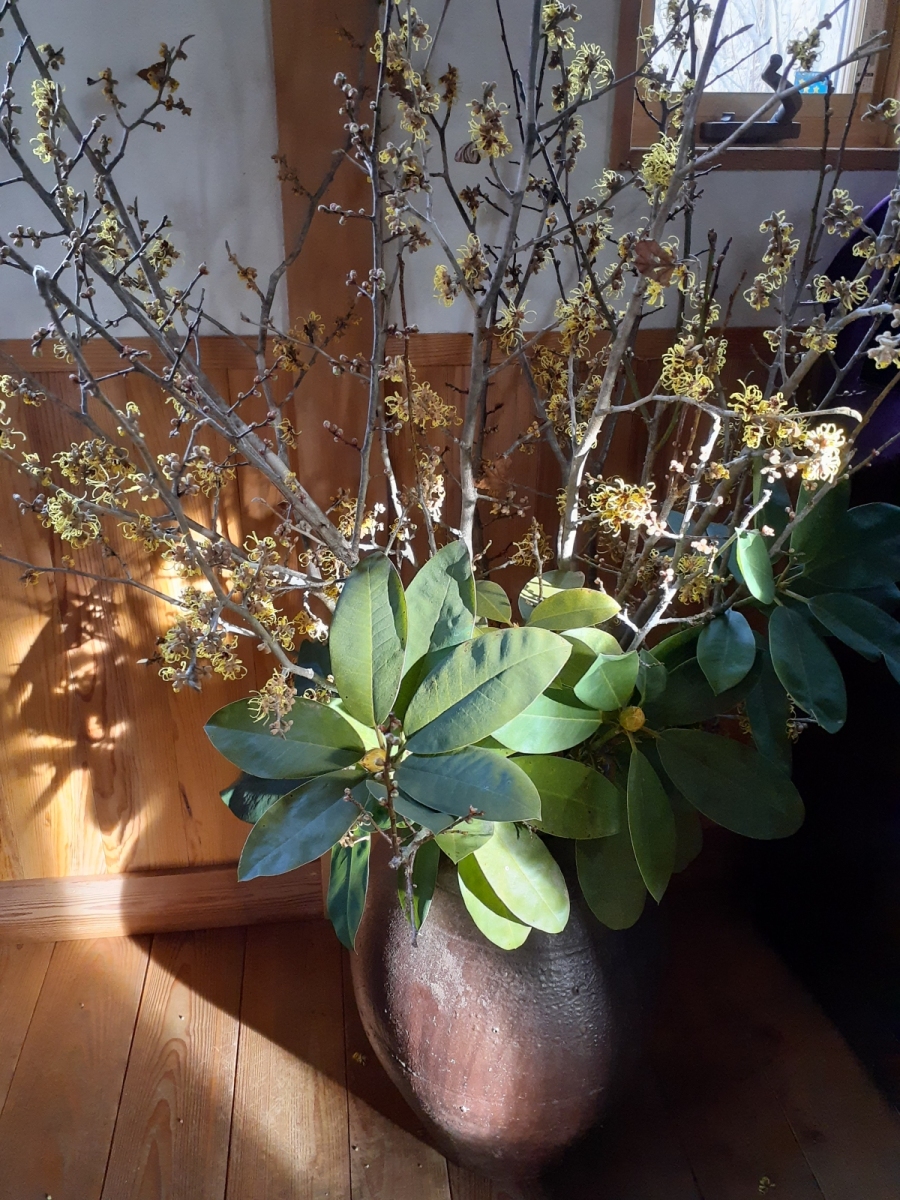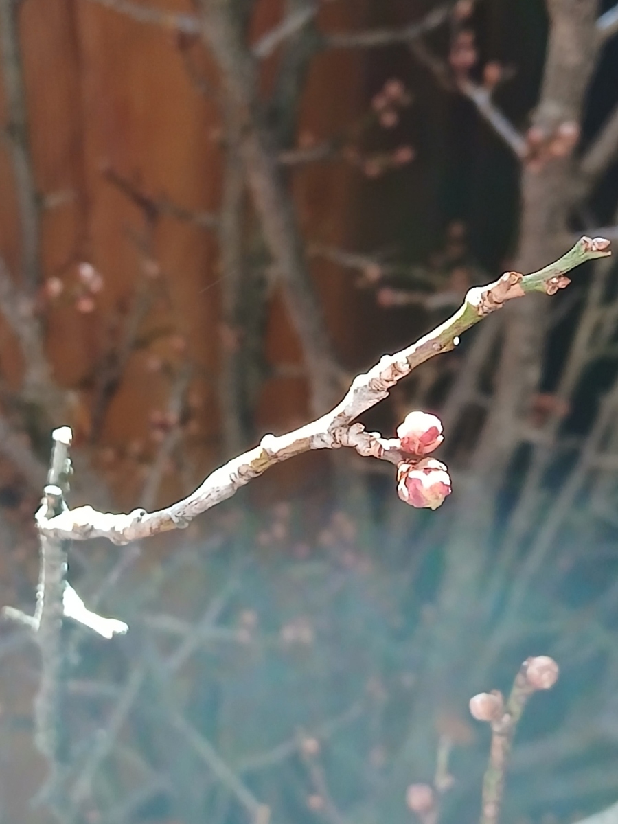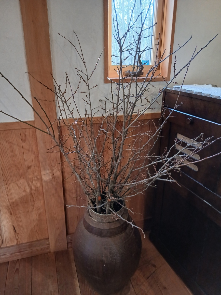 2026年 2025年 2024年 2023年 2022年 2021年 2020年 甲州野梅、まんさく、シャクナゲの枝。2026年2月15日。先週の日曜日は雪。今日は春先取りのような暖かい日になりました。 甲州野梅。2026年2月1日。一見すると棒のような枝。でも、丸い花芽がついています。 甲州野梅。2026年1月25日。梅の枝を挿したバケツを外に置いていたら水がバケツの形に凍っていました。でも生きています!